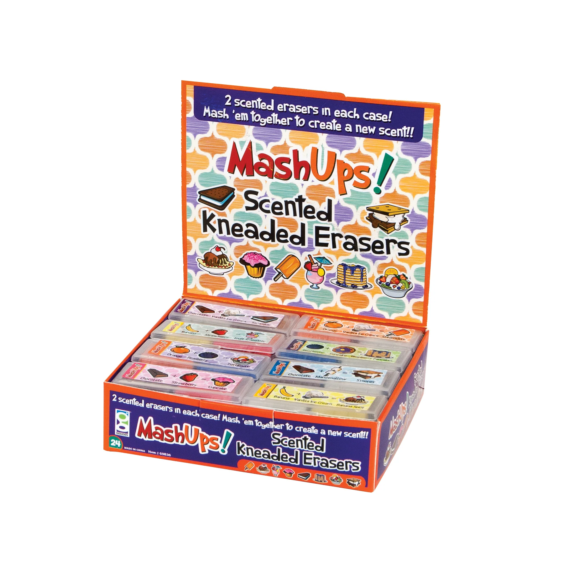 What's better than a scented, delicious smelling eraser? How about 2 scented, delicious smelling erasers? Our Mash Up Scented Kneaded Eraser has 2 scented erasers in each case that you can mash together to create a new scent! Students can run their very own scent laboratory at their desk as they experiment with different combinations. This is a very fun activity that challenges your senses. Pull and twist to make a clean eraser surface.